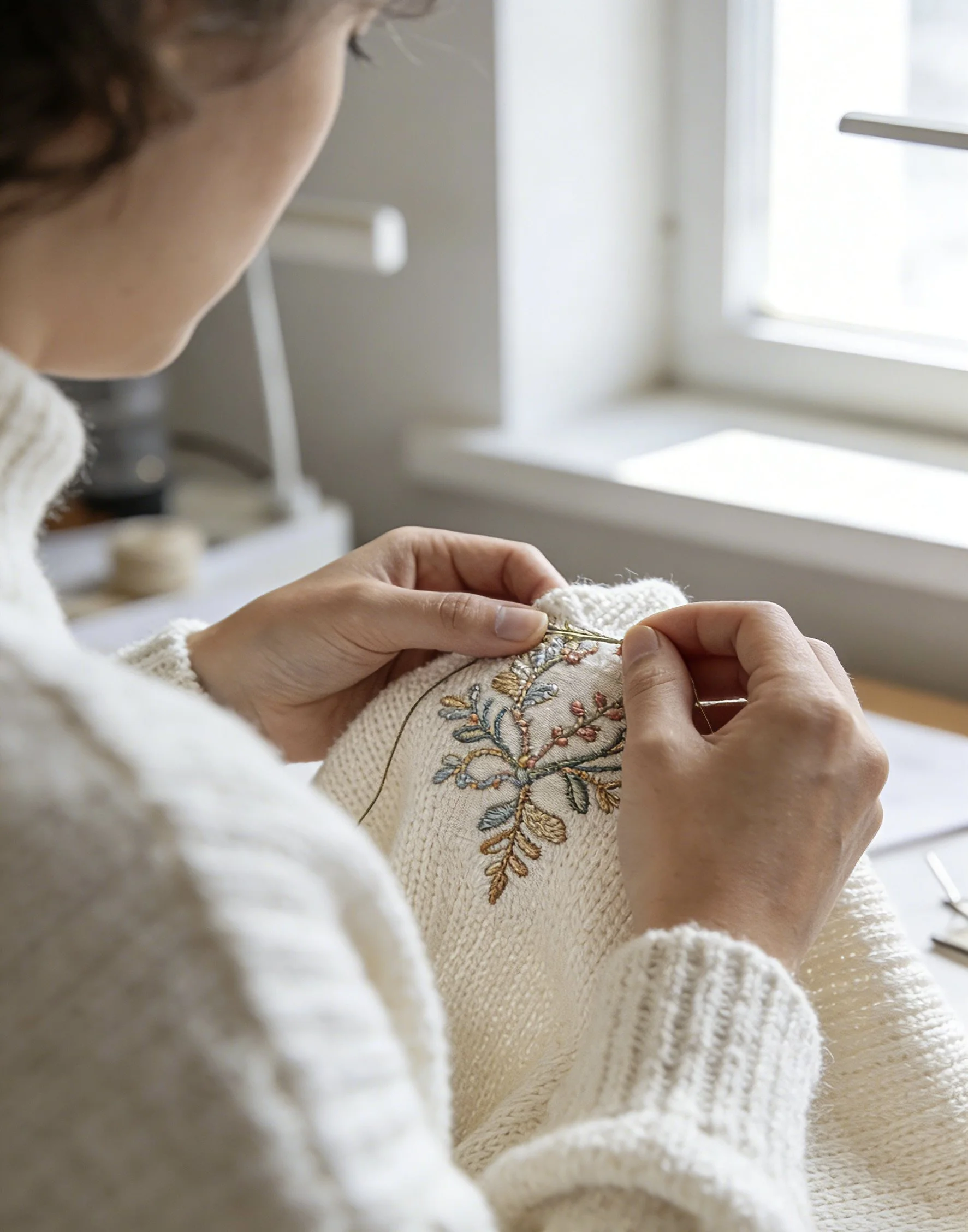 Premium Knitwear Manufacturer. Specializing in exquisite hand-embroidery, hand-crochet, and hand-knitting techniques for global fashion brands.
